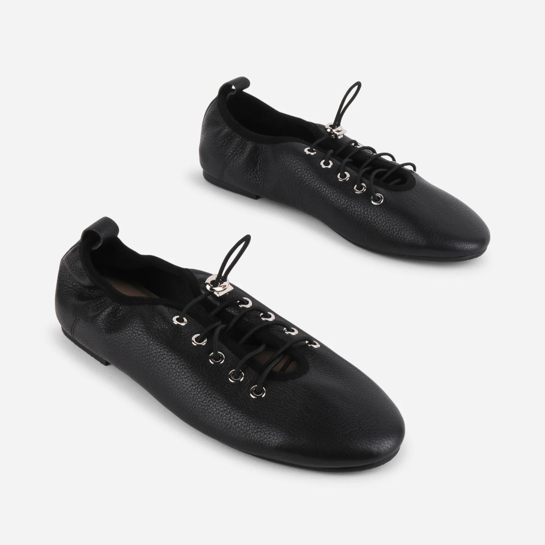 Just sporty enough. ATOMIC is meant for all day go, go, go action. We love the elastic corset lace detail and the toggle closure– and this ballet flat comes equipped with the most padded, flexible sock and footbed we have ever used!