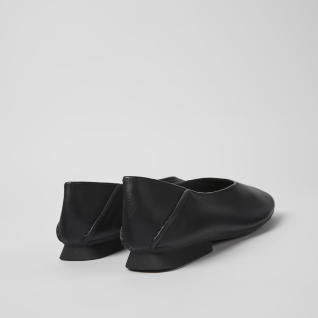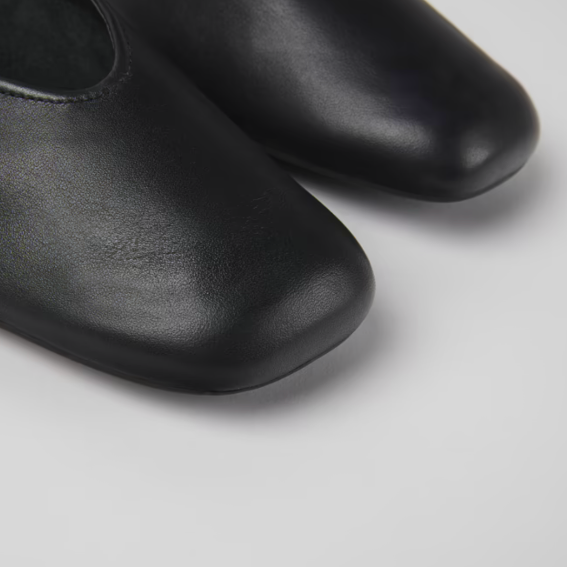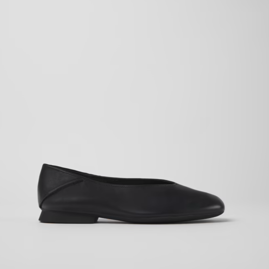 Black leather women's ballerina flats with OrthoLite® Recycled™ non-removable footbeds and TPU outsoles (20% recycled).