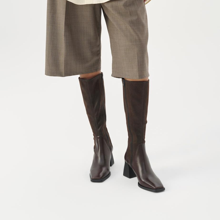 Designed with lasting appeal, Edition Hedda remains a timeless favourite. The tall boot features an upper crafted from dark brown leather, while the shaft is made of stretchy synthetic leather.