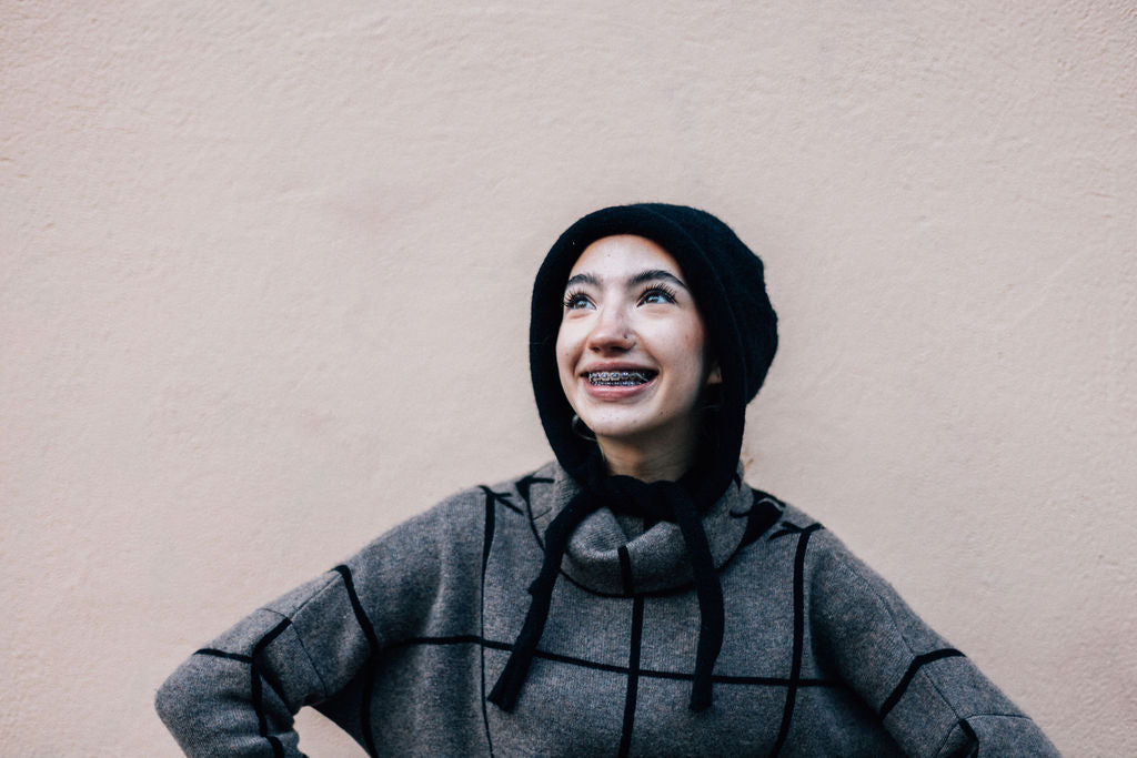 Get cozy in this winter bonnet. Made with a soft plush yarn, ties cutely around the neck and keeps your ears and head toasty warm.