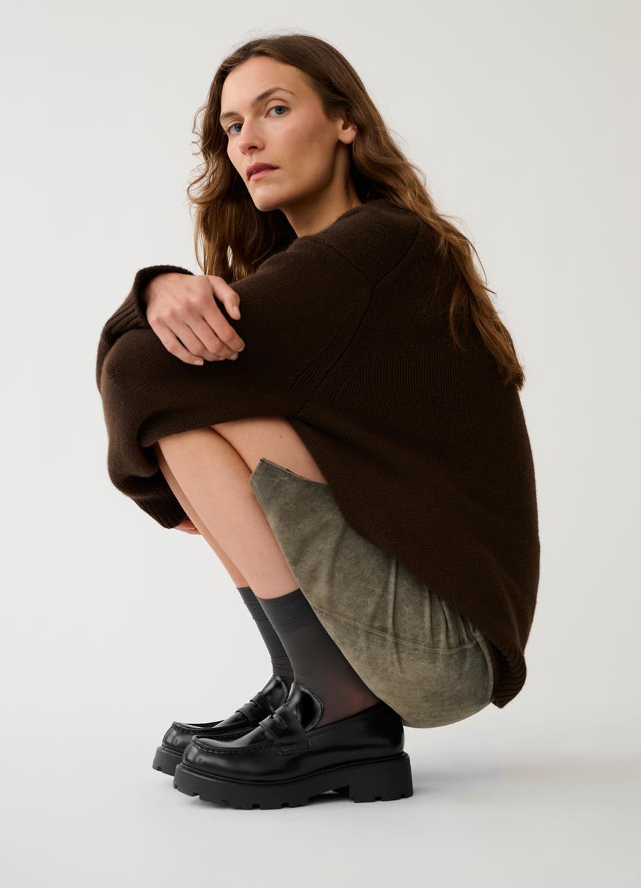 Cosmo 2.0 is the chunky penny loafers with a robust silhouette. The style is crafted from polished black leather with contoured penny straps and visible stitching across the upper. The solid rubber outsoles measure 45mm. Note: Use a shoe horn to protect the heel cap and further extend the shoe’s lifespan.