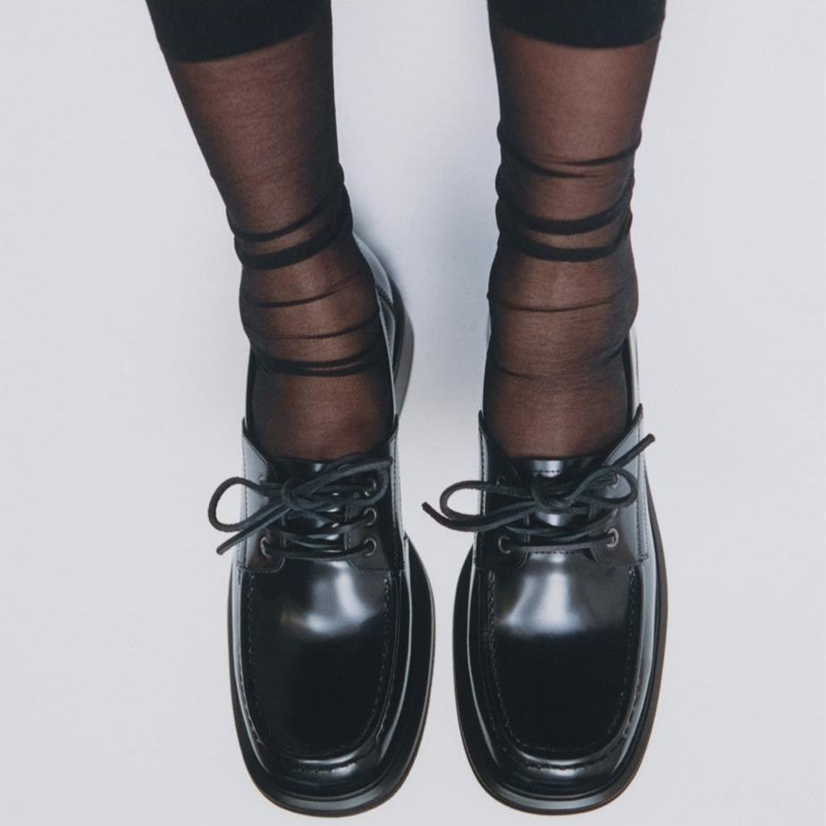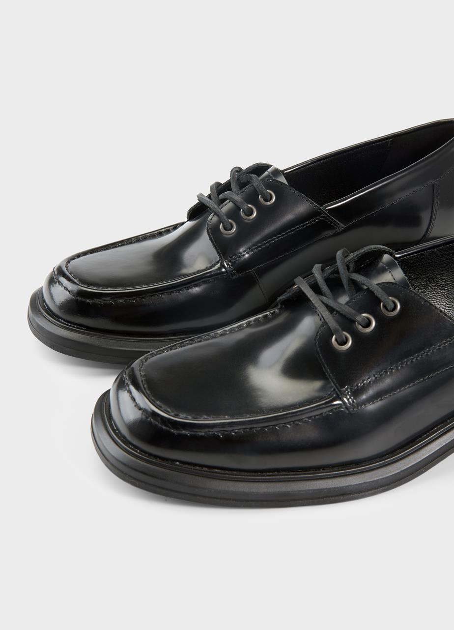 A contemporary take on the timeless boat shoe. Ellis is crafted from black polished leather and has a lace-up fastening, square toe shape and decorative stitching. Details include a chrome-free leather lining and insole.