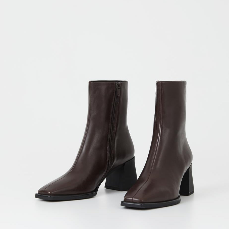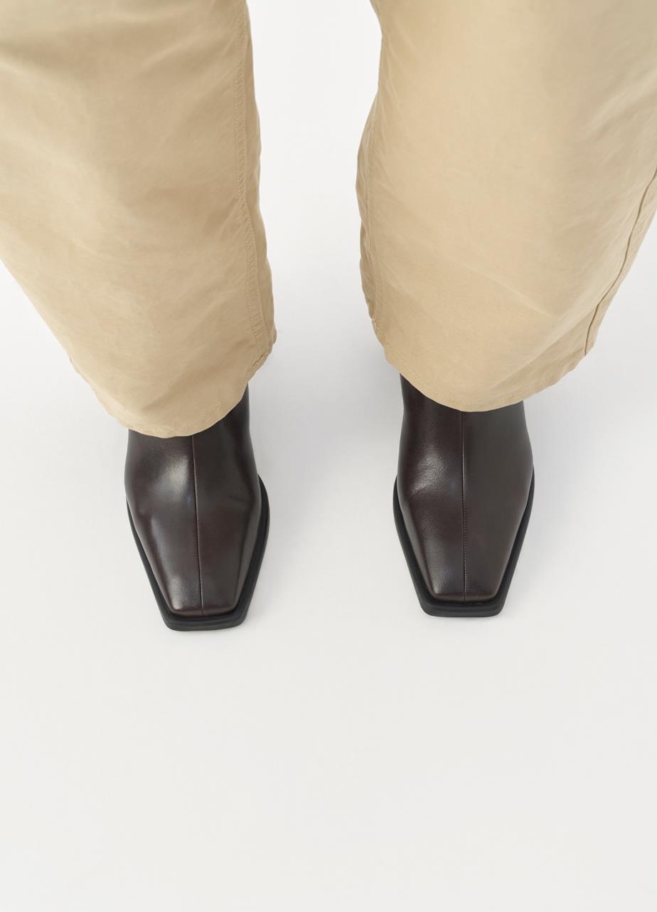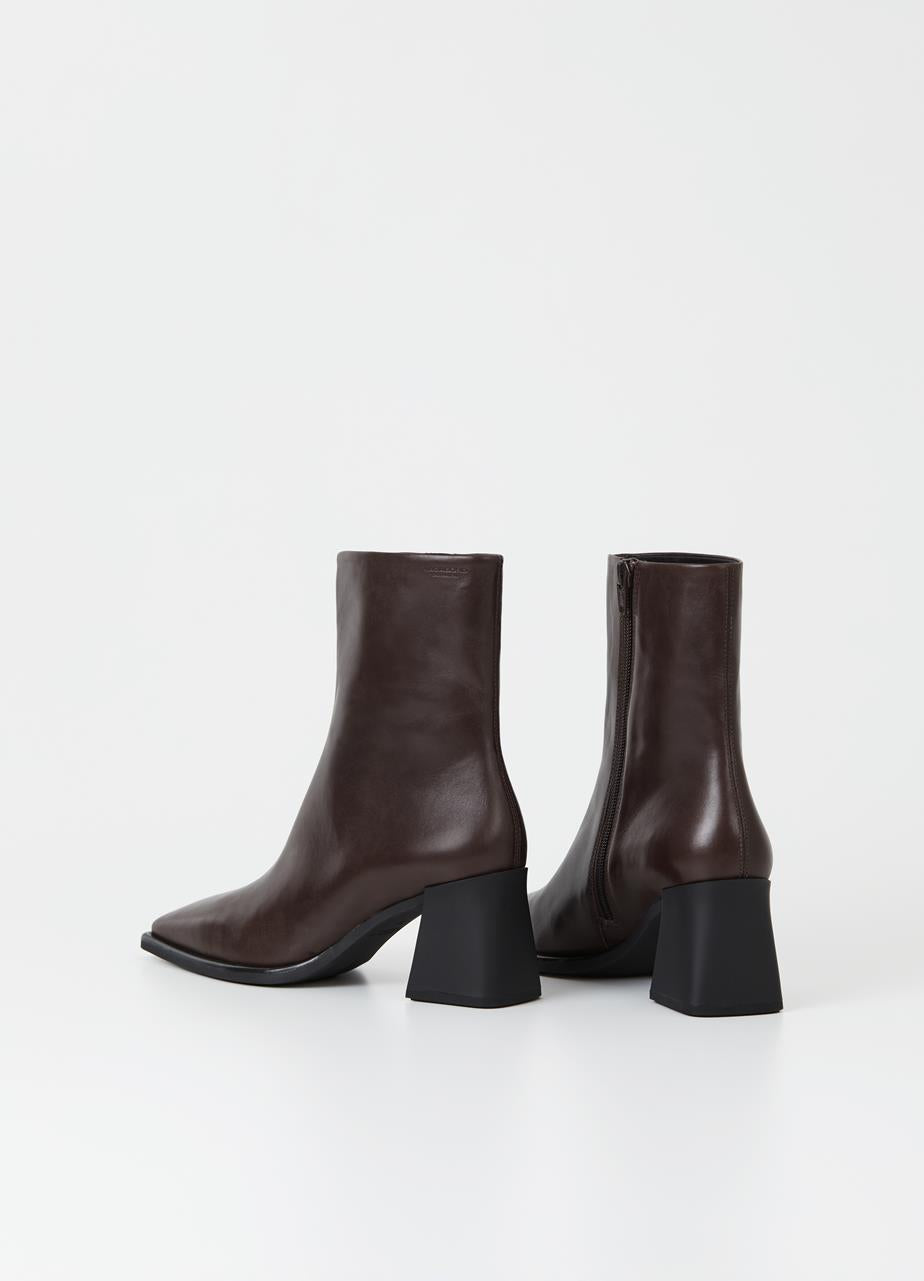 Designed with lasting appeal, Edition Hedda remains a timeless favourite. Crafted from dark brown leather with a sleek square toe shape and centre seam.The ankle boot has a 70 mm flared heel, zip-side closure and chrome-free leather insock.