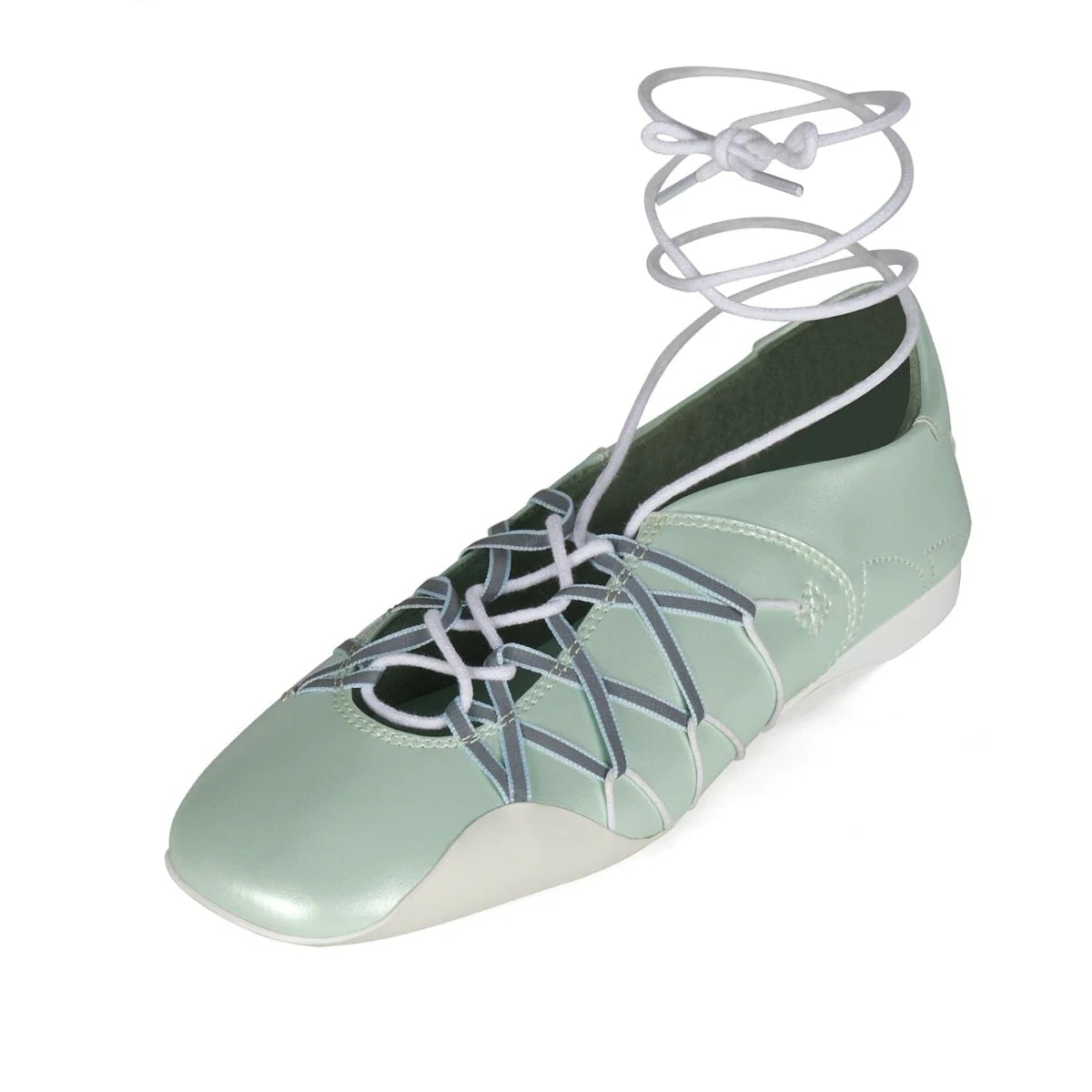 JEFFREY CAMPBELL M-V-P -LT GREEN LACE UP FLATS