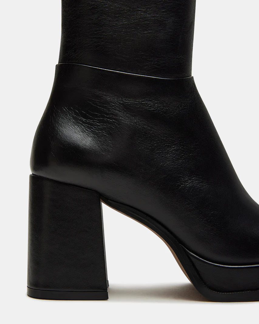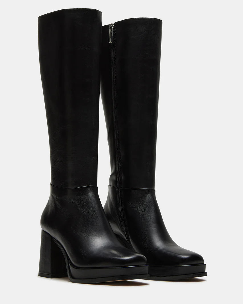 rafted for ultimate sophistication, these knee-high boots boast a sleek square toe and sturdy block heel for effortless style. Elevate your wardrobe with the MYSTERY platform boot.