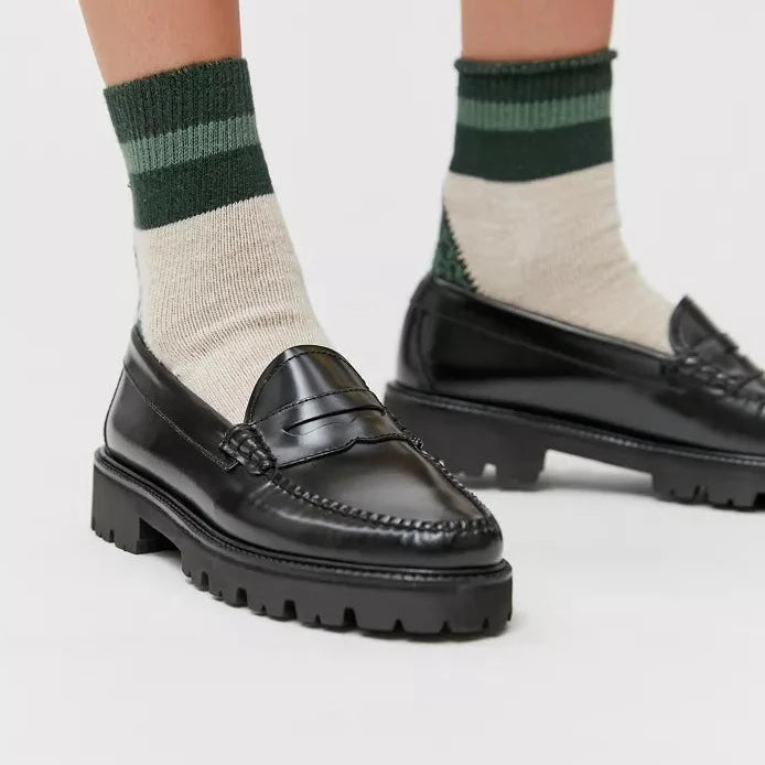 Supremely wearable and casually elegant, the Whitney Lug penny loafer has a chunky lug sole for added comfort and Height, and tons of character. Handsewn in El Salvador, this beefroll-style penny loafer with heritage moc stitching is as good as it gets.
